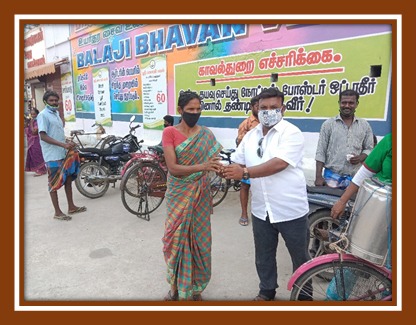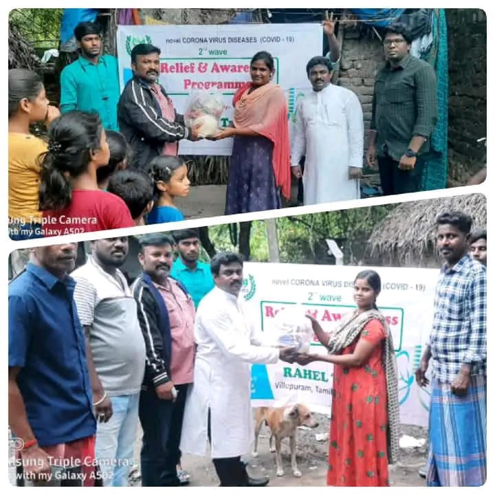 On May 5, 2021, a COVID-19 relief and awareness programme was conducted in Villupuram Town. Essential groceries were distributed to around 100 families to support them during the second wave of the pandemic.