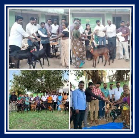 On July 6th, 2022, a welfare program was conducted in Kotteripattu and Alagramam villages of Mailam Block, Villupuram District, where free goats were distributed to widows and economically disadvantaged individuals. This initiative, carried out in collaboration with Agrotech FPC, aimed to promote rural livelihood support and empower the underprivileged communities through sustainable livestock farming.